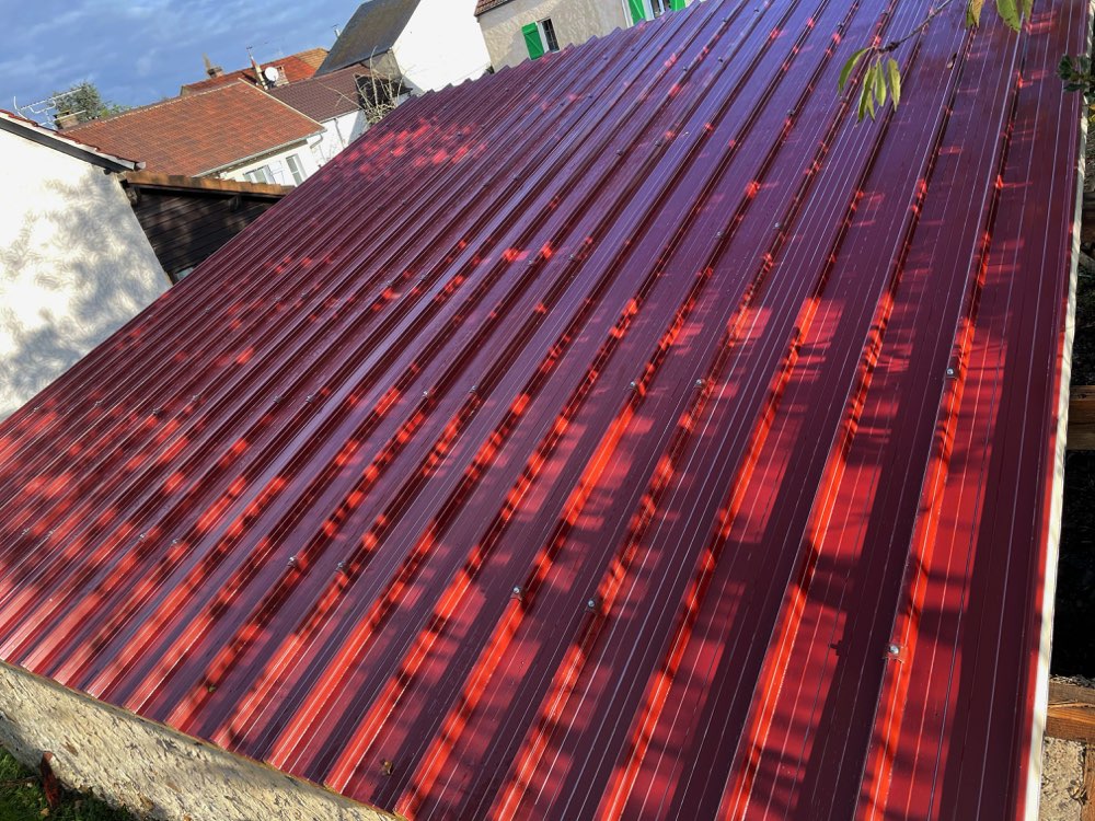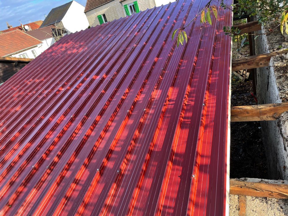 Remplacement d’une ancienne toiture en plaque d’amiante par un nouveau recouvrement en taule bac acier isolé à Orgerus (78910).